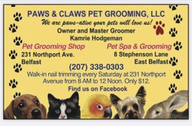 Paws & Claws Pet Grooming 8 Stephenson Lane Belfast, ME 04915